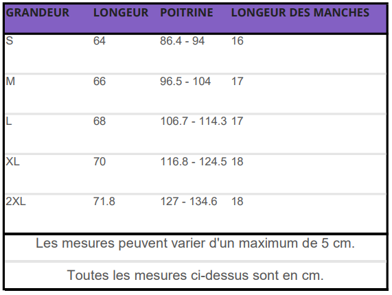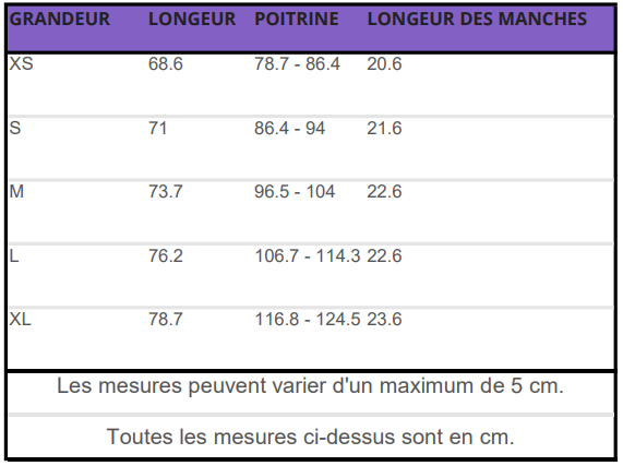 Size - Lenght - Chest - Sleeves